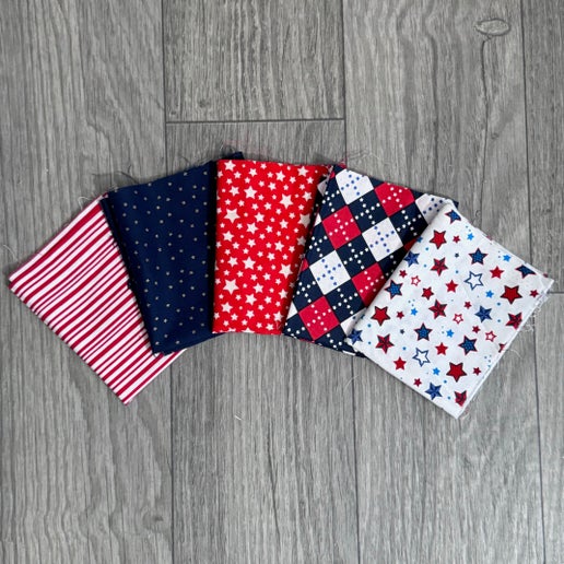 Coordinating "Bow Making Bundle" of 5 individual "skinny quarters" of fabric.