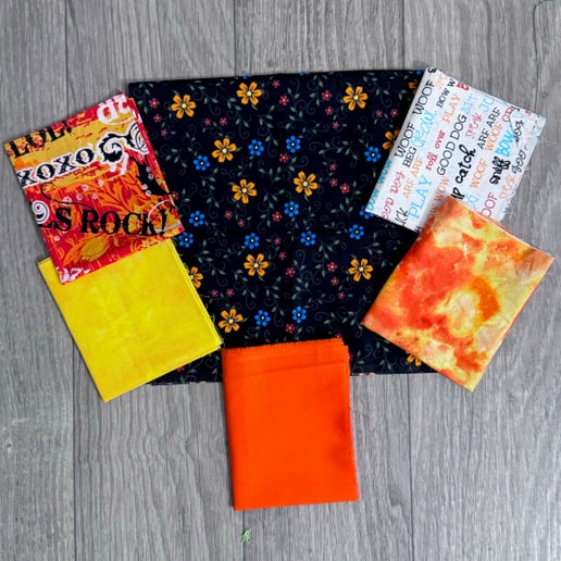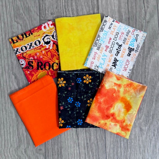 This bundle has fun and vibrant florals, firey orange and yellow.