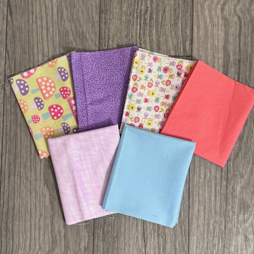 This bundle has Mushrooms and florals and coordinating pinks, purples, and blues.