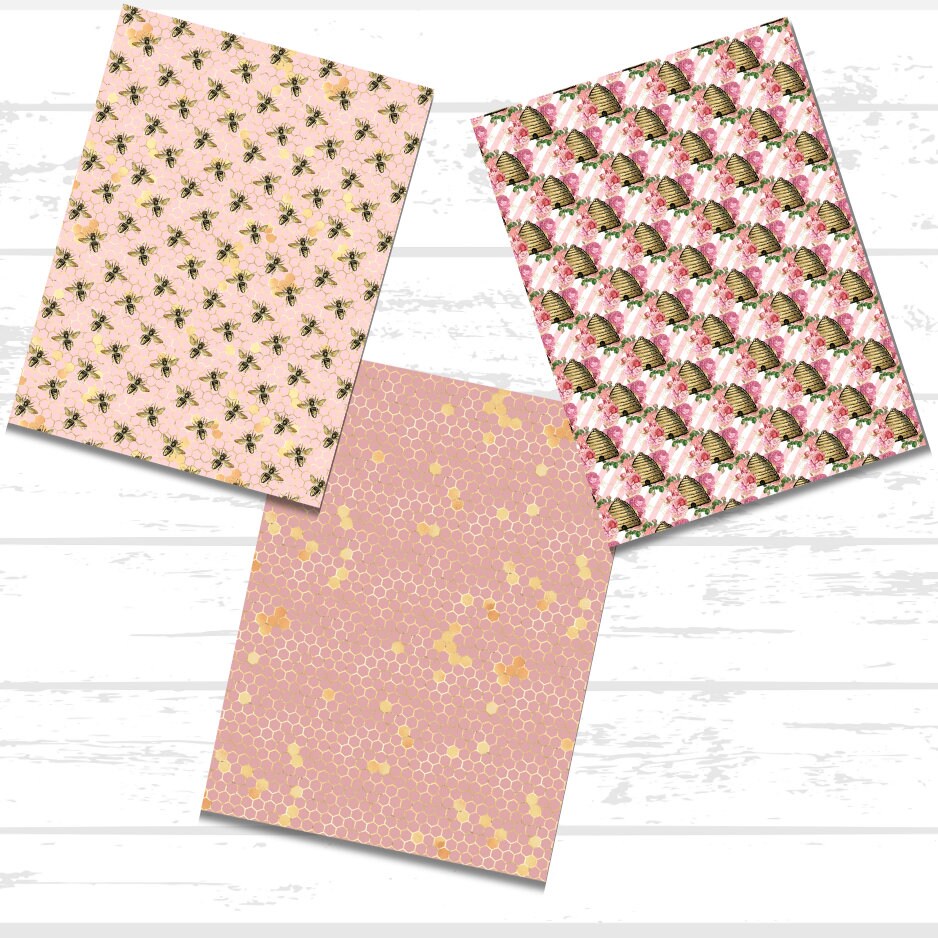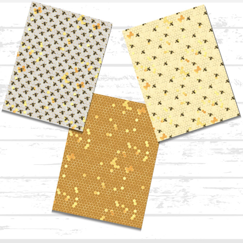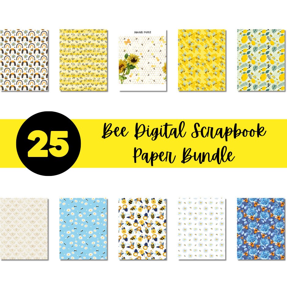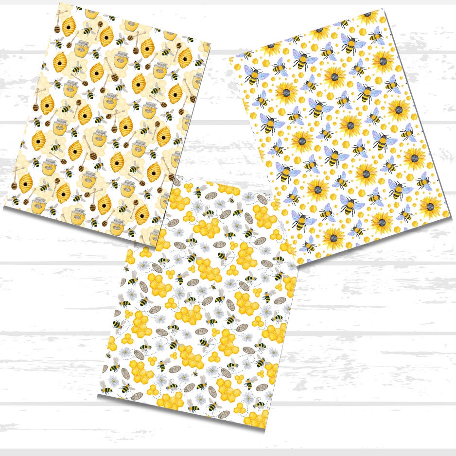 Bee Printable Scrapbook Paper Bundle | Honeycomb Beehive Honey Jar Bumblebee