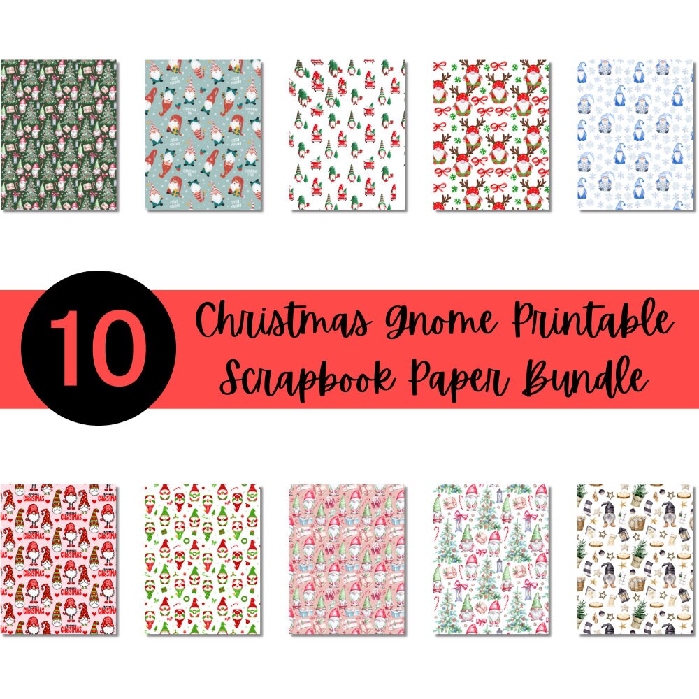 Christmas Gnomes Printable Scrapbook Paper Bundle | Winter Holiday Gnomes