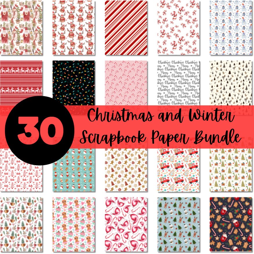 Printable bundle of 30 different Christmas and Winter themed Digital Scrapbook Papers for crafting and decorating. You get all 30 prints that you see in the listing photos. There are several different Christmas and Winter designs, so there is something for everyone. Traditional Santa, Reindeer, Candy Canes, Snowmen, Red and Green, Christmas Trees, Gingerbread, Nutcrackers and all the things you think of when you think Christmas!