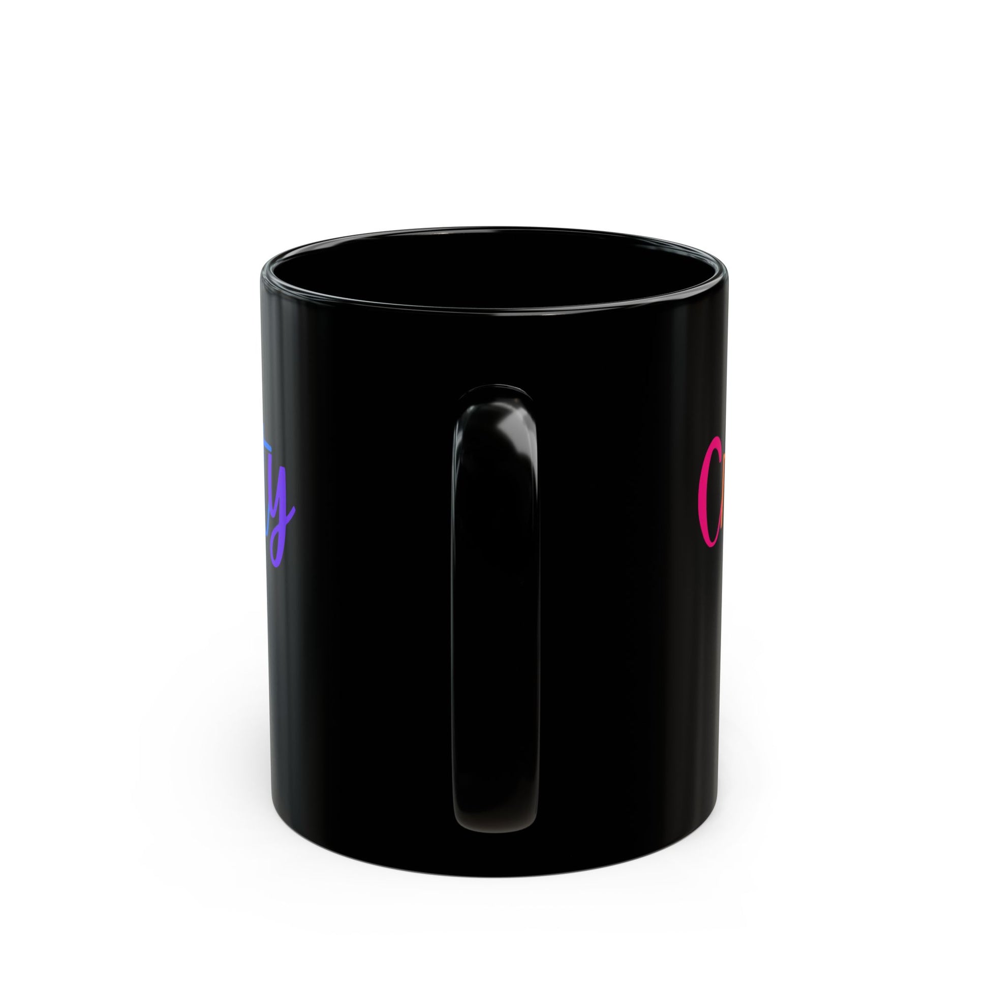 Black ceramic .: 11 oz (0.33 l) .: C-handle .: Note: black design elements on black mug may differ in tones.
