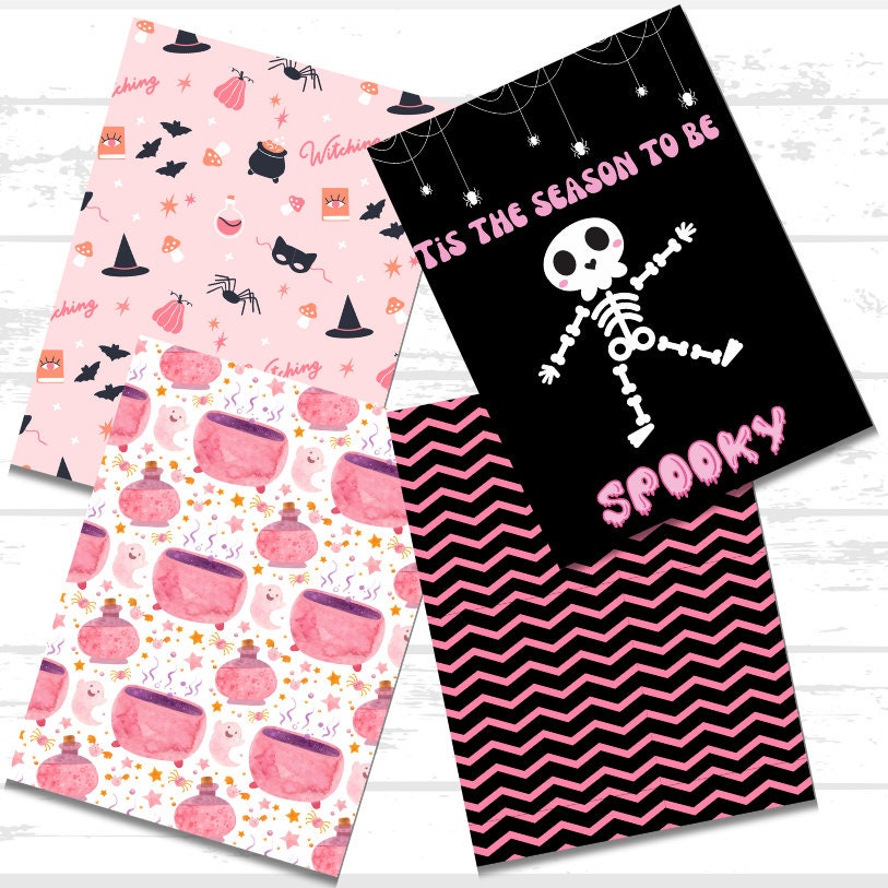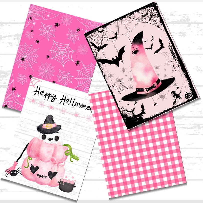 This Printable Halloween Bundle includes 16 unique digital scrapbook and printable paper pages, perfect for crafting, decorating, and creating your own Halloween magic. Each design sticks to a playful pink Halloween theme, giving a fun twist on classic spooky favorites.