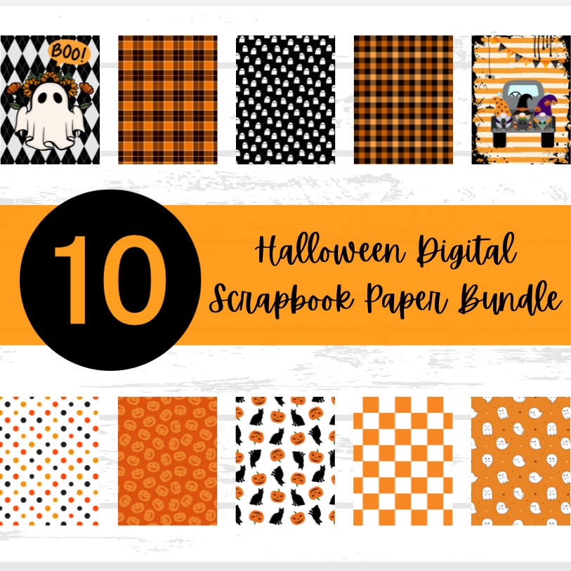 Printable bundle of 10 different Orange and Black Halloween themed Digital Papers for crafting and decorating. You get all 10 prints that you see in the listing photos. There are several different Halloween designs, so there is something for everyone. Traditional Halloween with Orange and Black, Pumpkins, Ghosts, Spiders, Bats, Black Cats, Gnome Witches, all the things you think of when you Halloween!