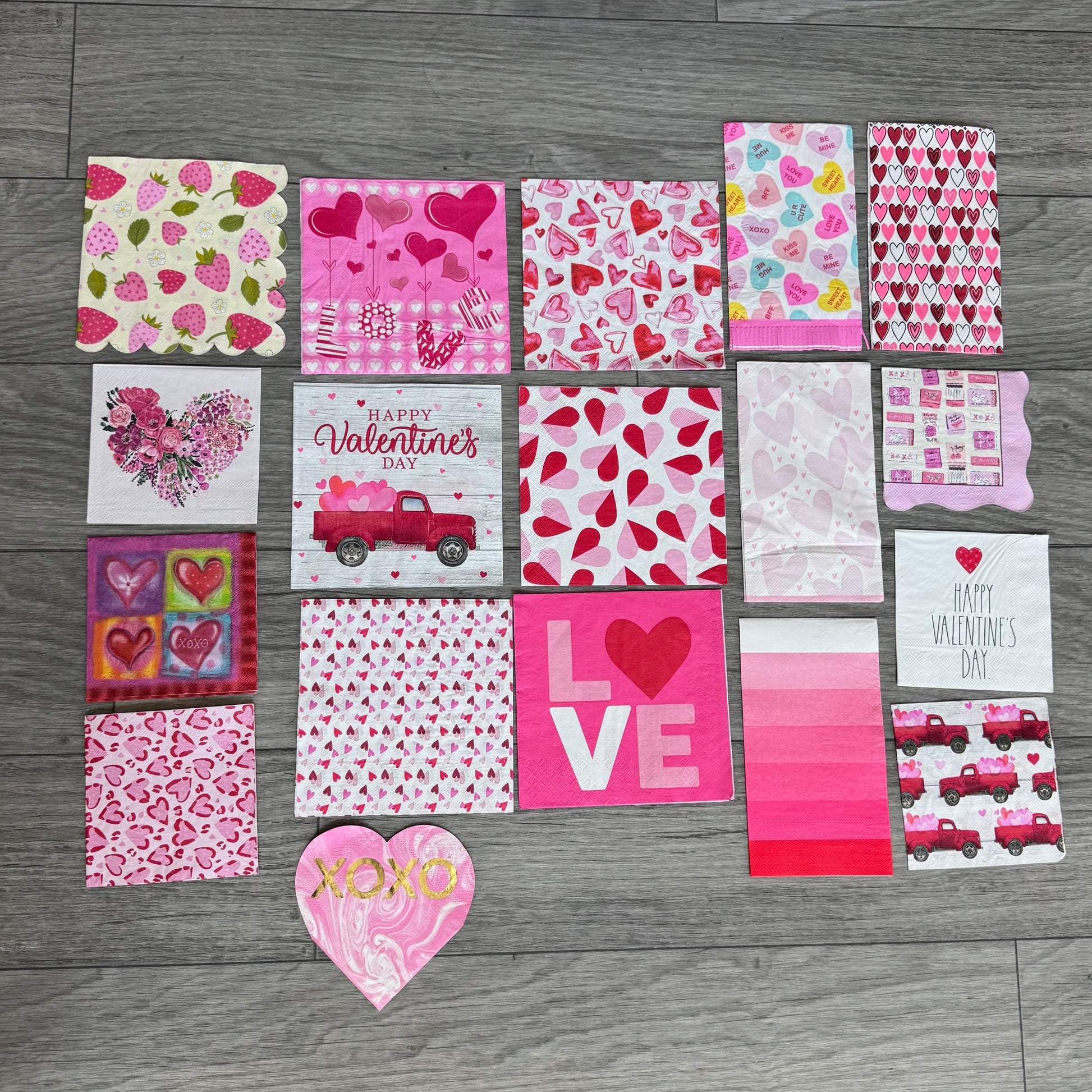 Pack of 18 Valentines Day Pink and Red napkins. This pack will give you all the LOVE vibes with all the hearts. You get 1 of each design, and each design has multiple images. Free shipping!