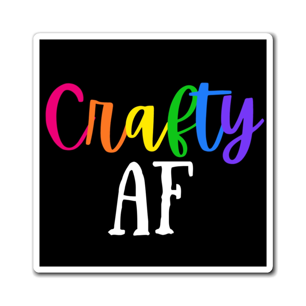 Crafty AF Refrigerator magnet. Makes a great gift! For indoor or outdoor use .: Three sizes to choose from .: Thin (0.03" (0.8 mm)) and lightweight .: Black backing