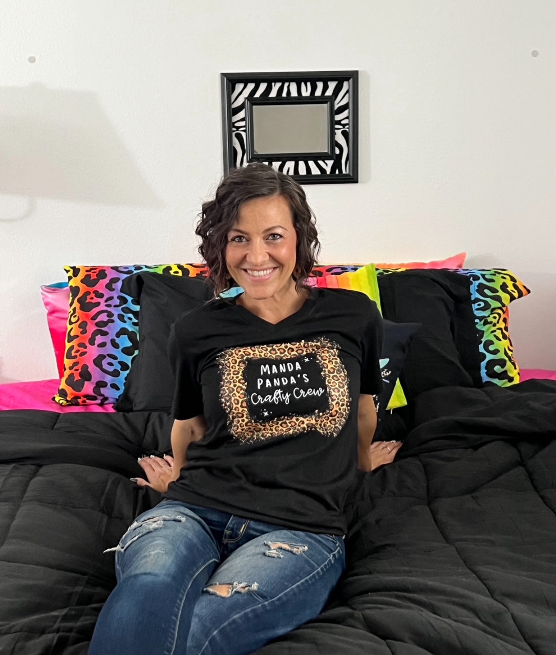 Manda Panda's Crafty Crew Jersey Short Sleeve V-Neck Tee