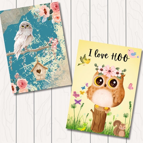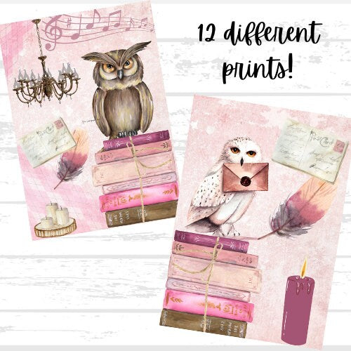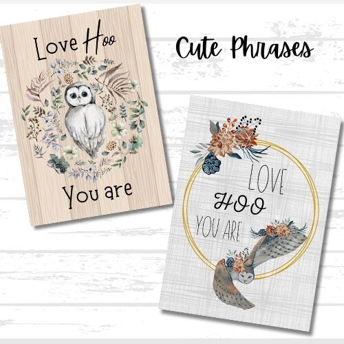 Printable bundle of 12 different Owl Themed prints for crafting and decorating. You get all 12 prints that you see in the listing photos.