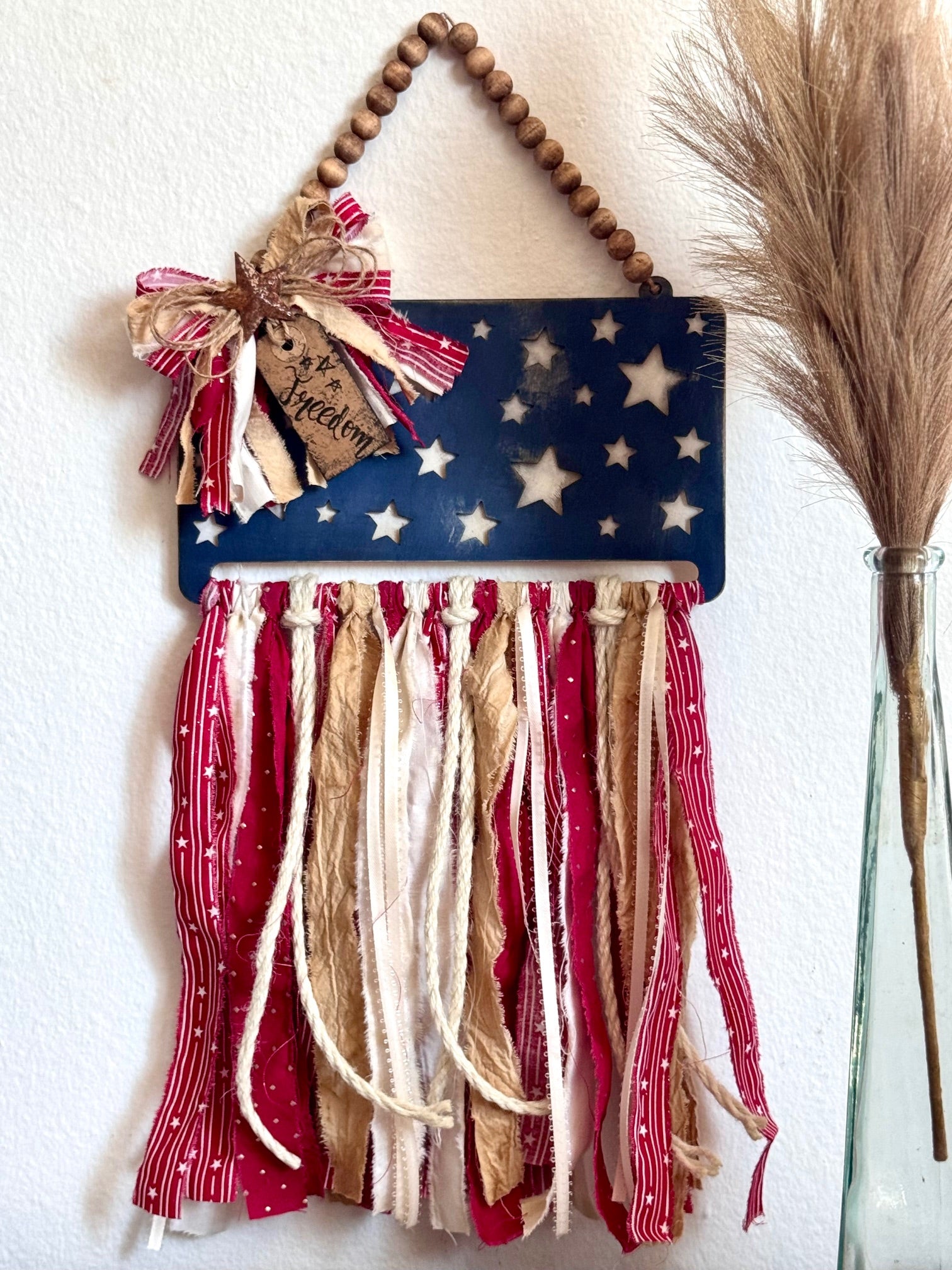 Patriotic Rag Flag Wood Cutout. Price includes free shipping!