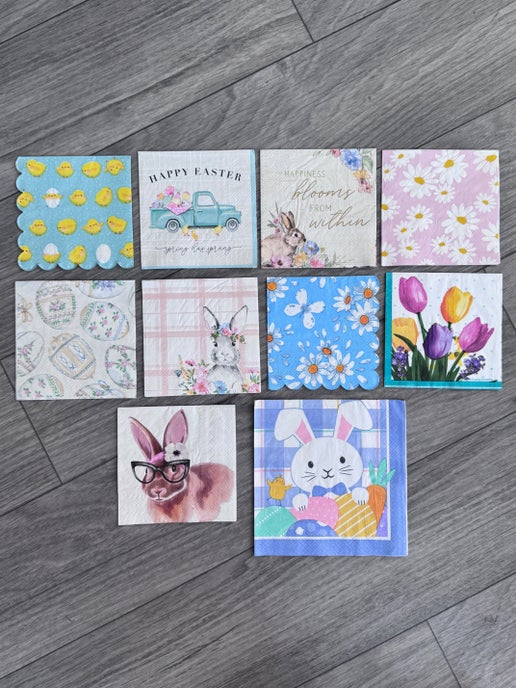 Pack of 10 Spring and Easter themed napkins. This pack will give you all the Spring vibes. You get 1 of each design, and each design has multiple images. Free shipping!