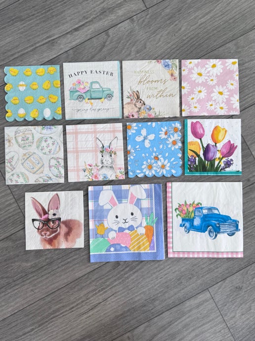Pack of 11 Spring and Easter themed napkins. This pack will give you all the Spring vibes. You get 1 of each design, and each design has multiple images. Free shipping!