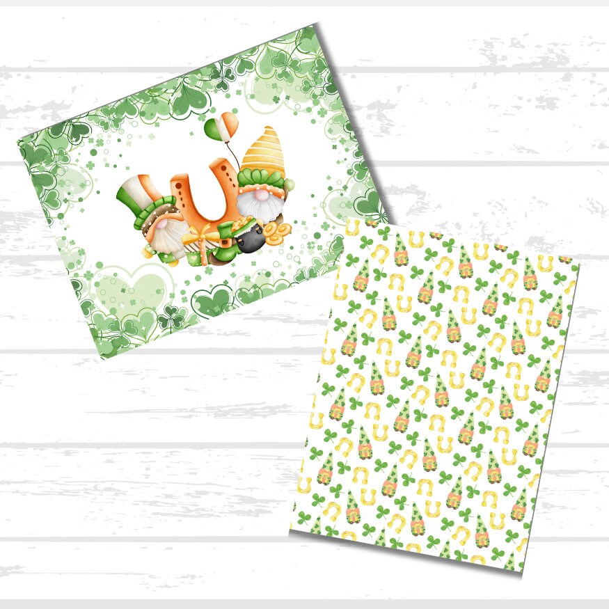 Printable bundle of 10 different St. Patrick's Day themed Digital Scrapbook Paper and Printables for crafting and decorating (the 9 shown plus 1 surprise bonus design!). You get all 9 prints that you see in the listing photos. There are several different St. Patty's Day designs, so there is something for everyone. Traditional Shamrocks, Horseshoes, Gold Coins, Pot O' Gold, Clovers, Rainbows, Leprechaun Gnomes, and all the things you think of when you think St. Patrick's Day! The Luck of the Irish is on your side with these printable scrapbook papers.