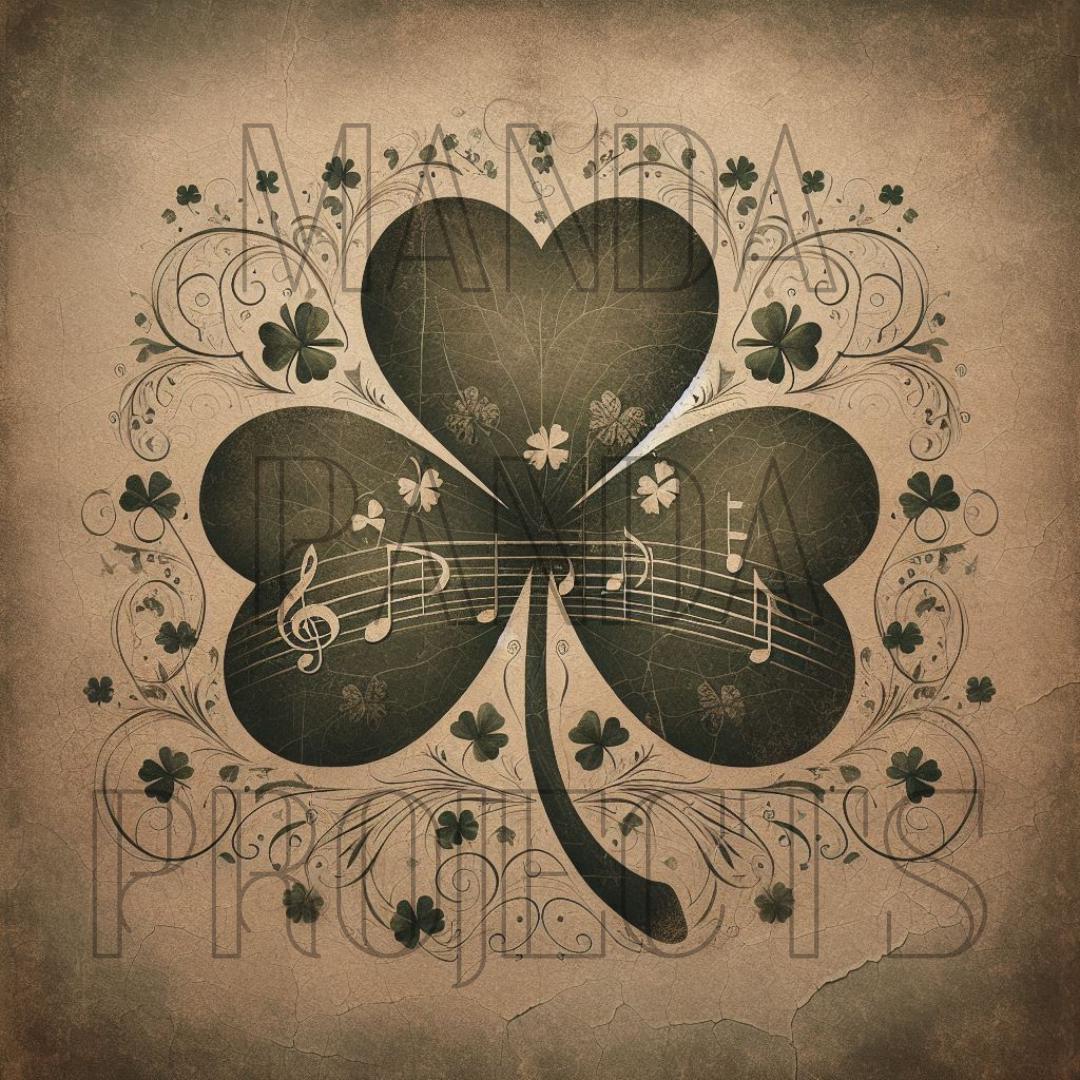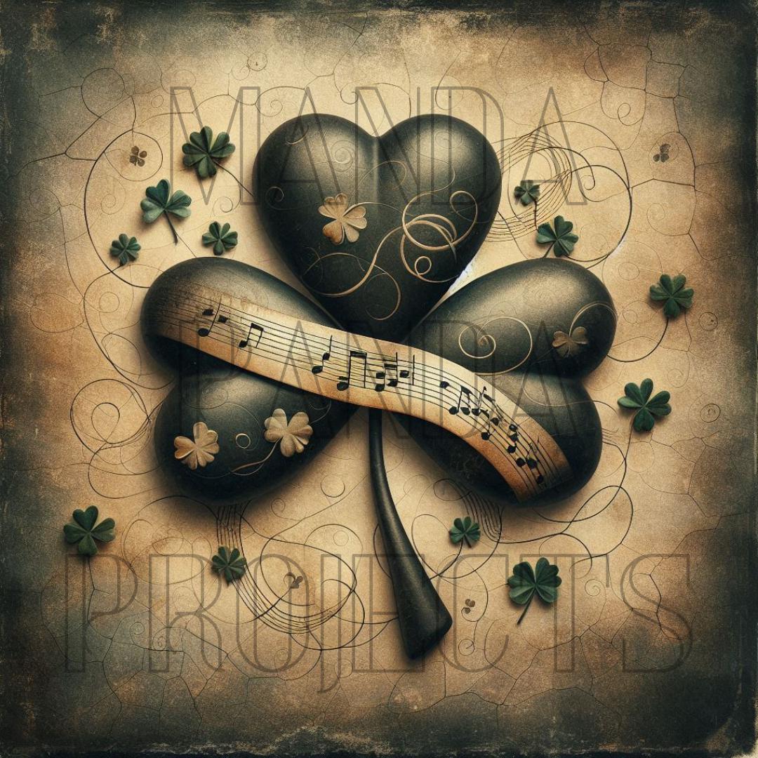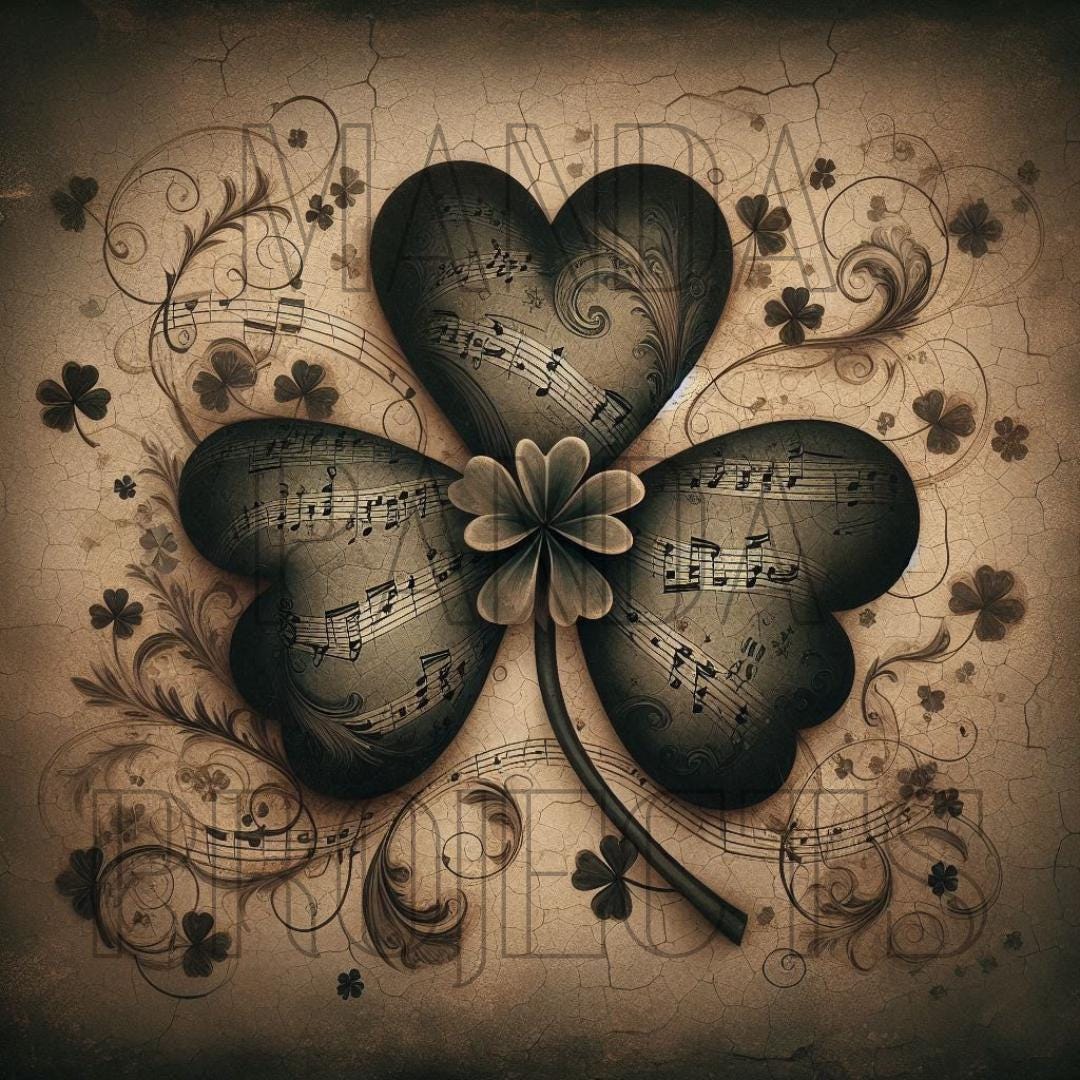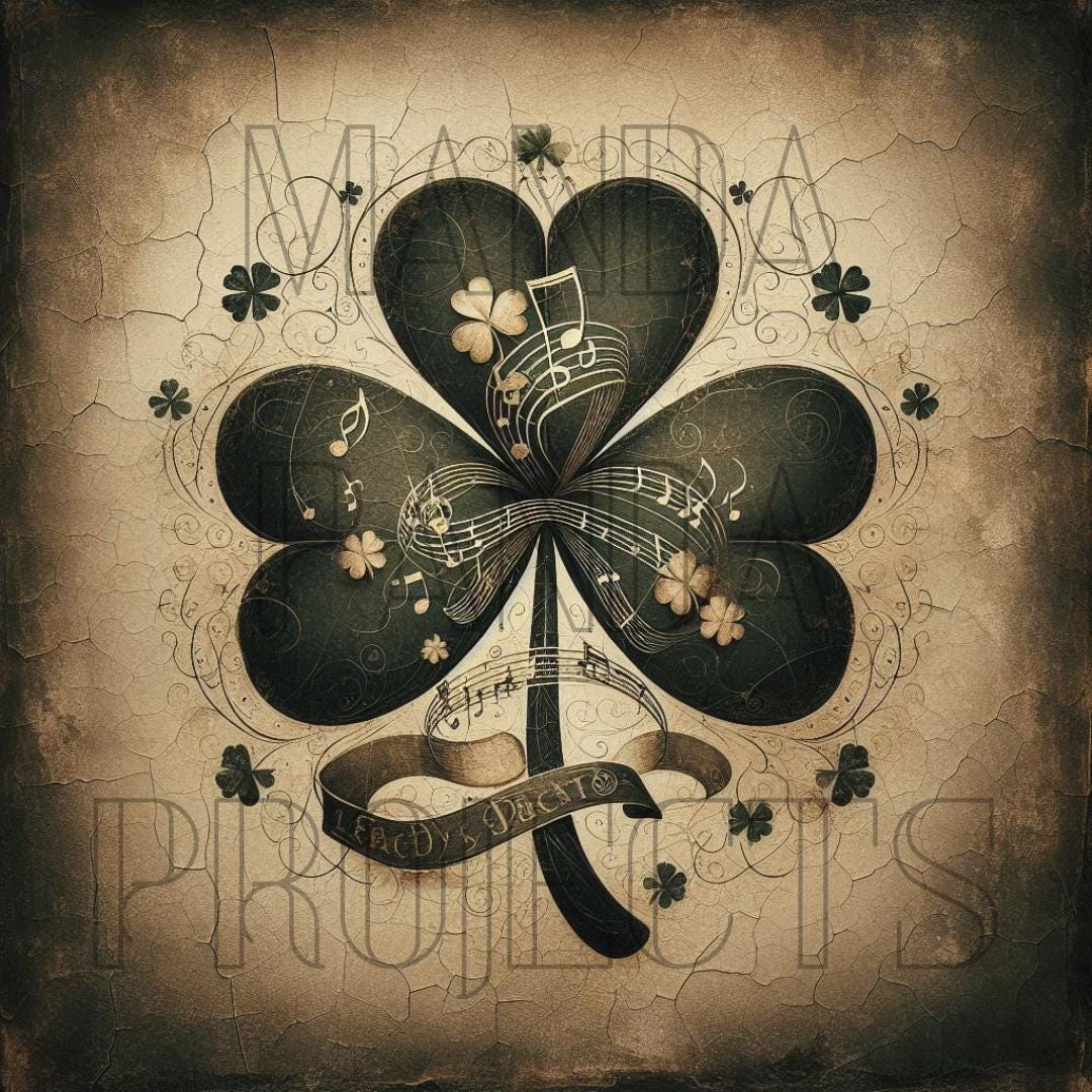 Add a touch of moody, grungy vintage elegance to your St. Patrick’s Day crafts with this dark, antiqued shamrock printable. With distressed textures, faded music notes, and nostalgic Irish charm, it’s perfect for junk journals, tags, cards, and rustic holiday decor.