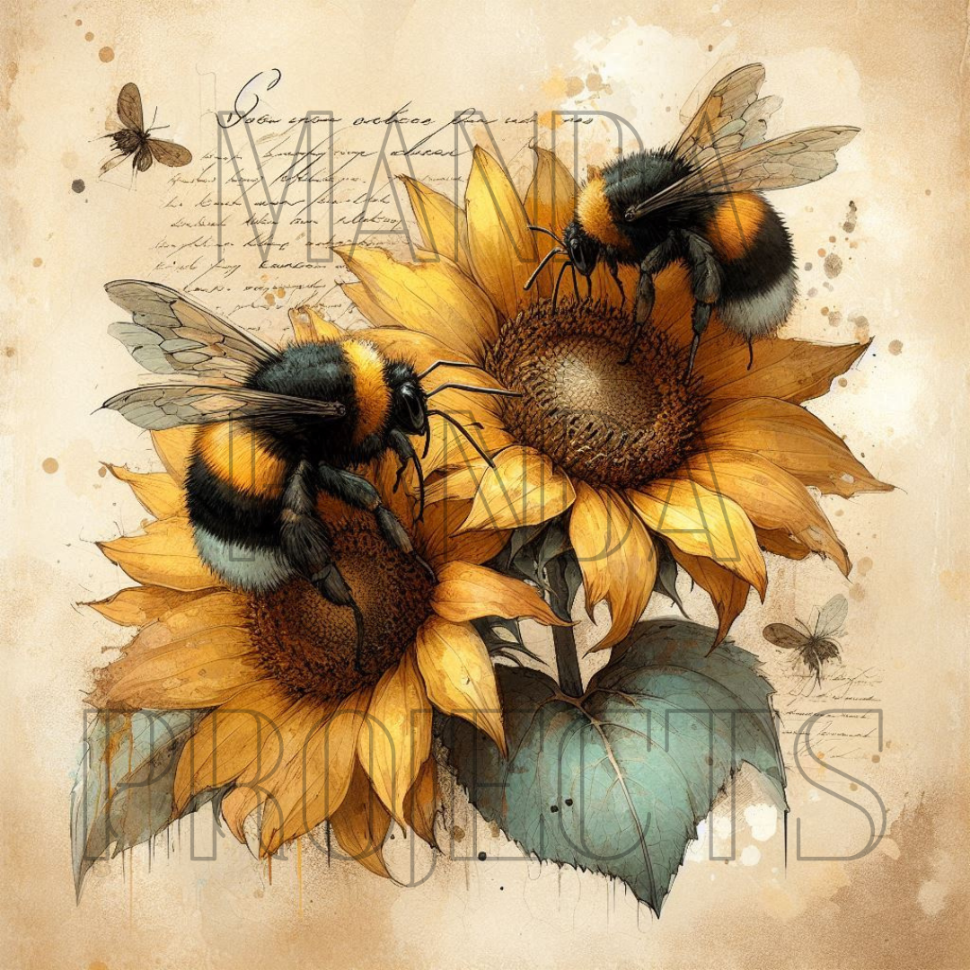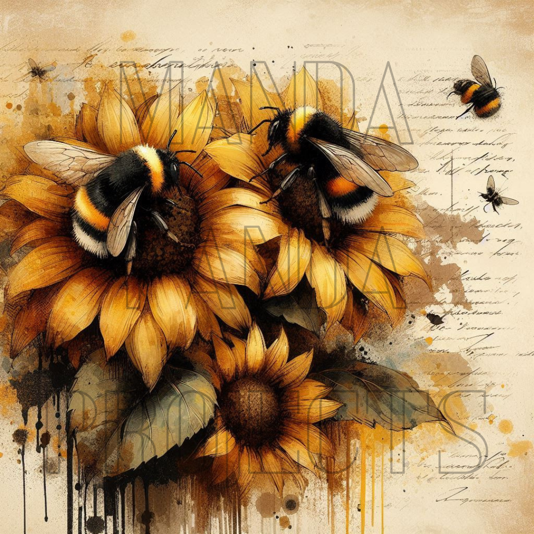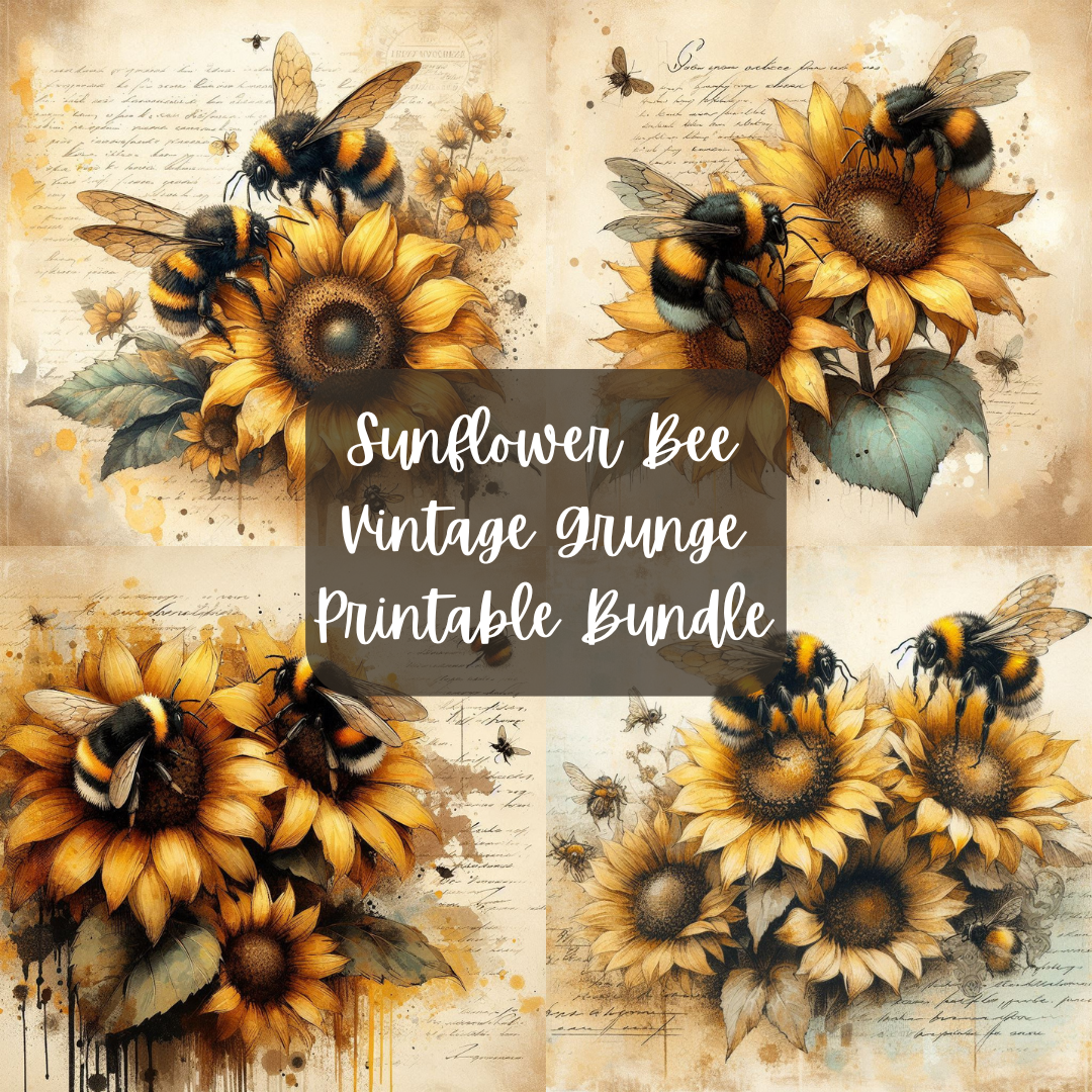 Printable bundle of 4 different styles of digital prints for crafting and decorating. You get all 4 prints that you see in the listing photos. There are several different vintage grungy sunflowers with bees and a music sheet background. This paper is perfect for Spring, Summer, and Everyday crafts and decor. These can also be used as printable art for framing.