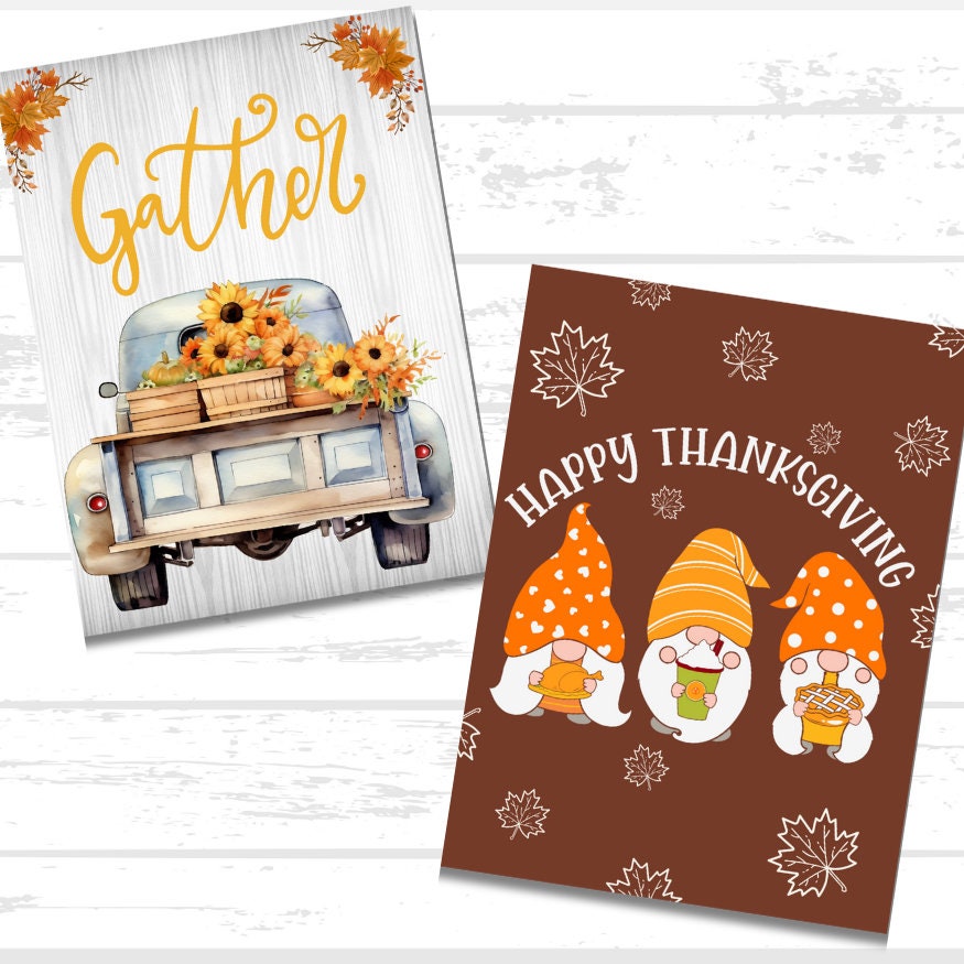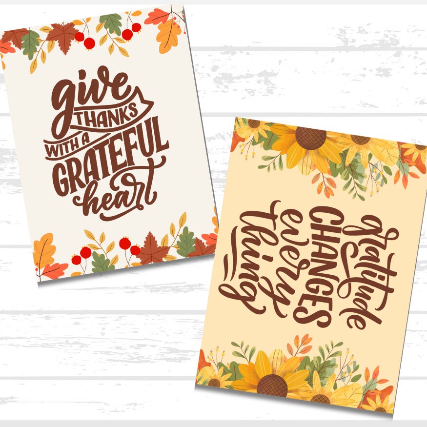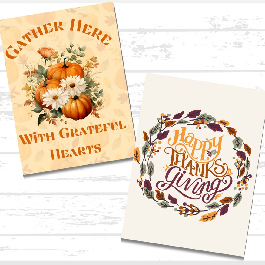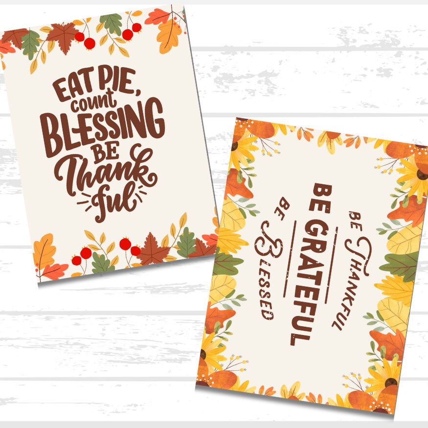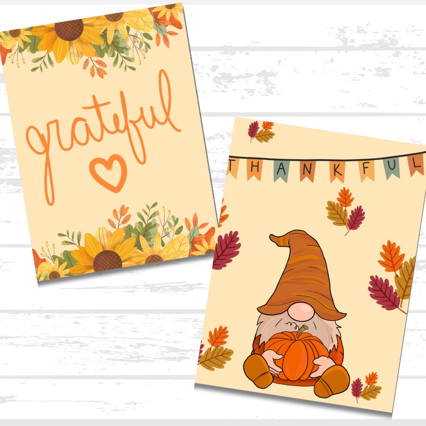 Thanksgiving Printable Paper Bundle | Grateful Thankful Blessed | Thanksgiving Wall Decor Art | Pumpkins Leaves Sunflowers | Turkey Day