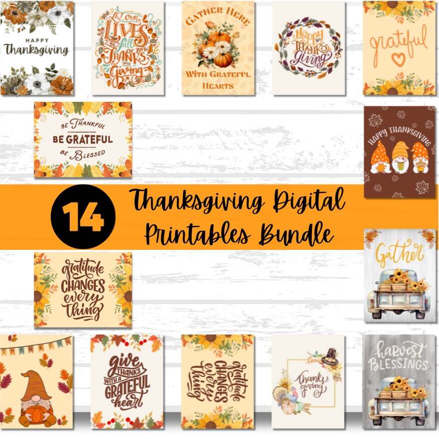 Printable bundle of 14 different Thanksgiving themed Digital Papers for crafting and decorating. You get all 14 prints that you see in the listing photos. There are several different Thanksgiving designs, so there is something for everyone. Traditional thankful, grateful, blessed sayings, Pumpkins, leaves, sunflowers, and all the things you think of when you Thanksgiving!