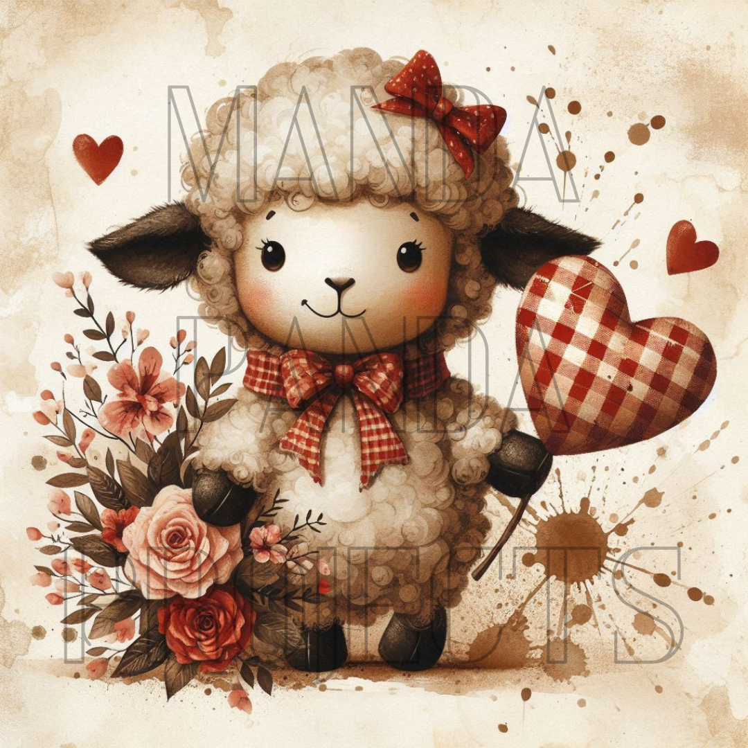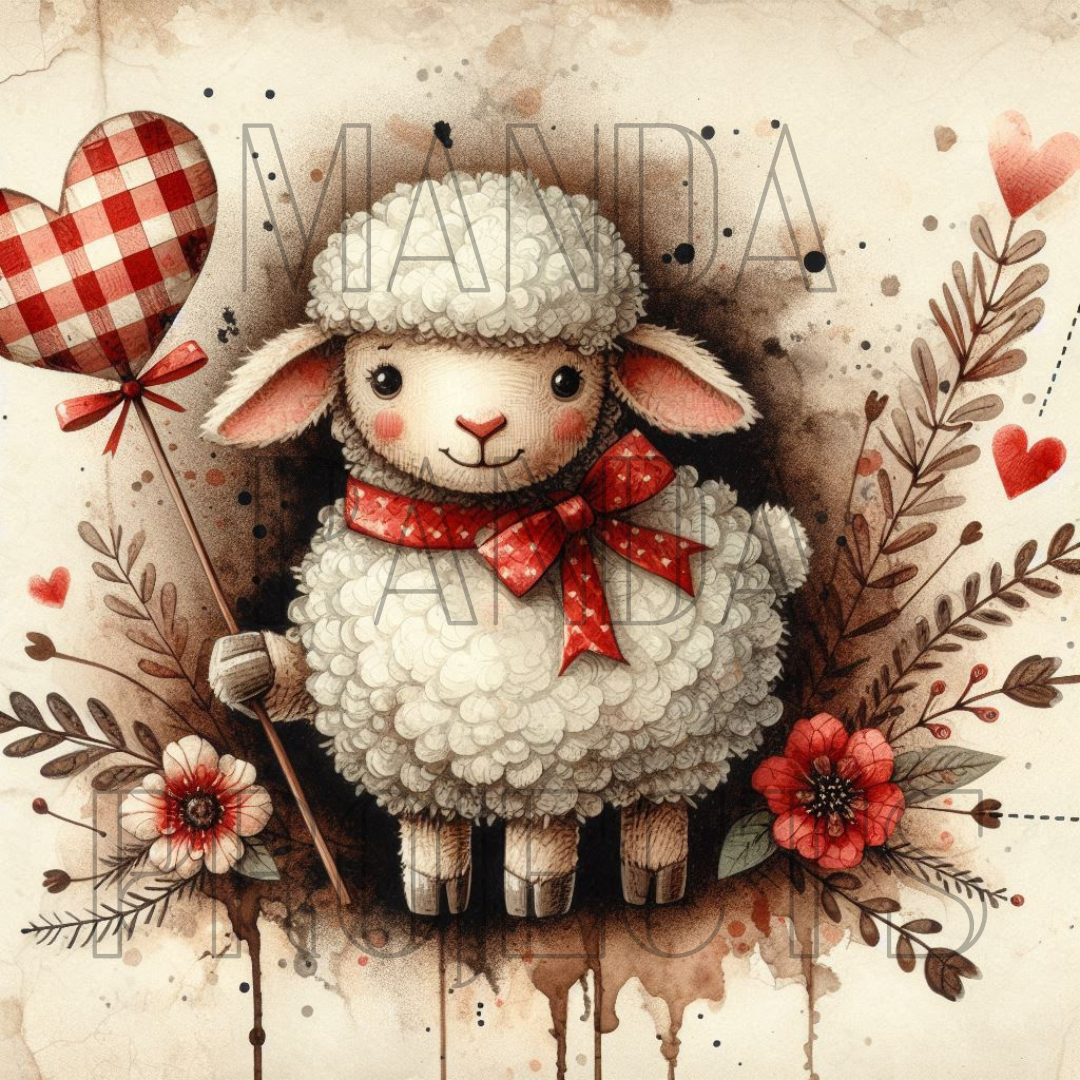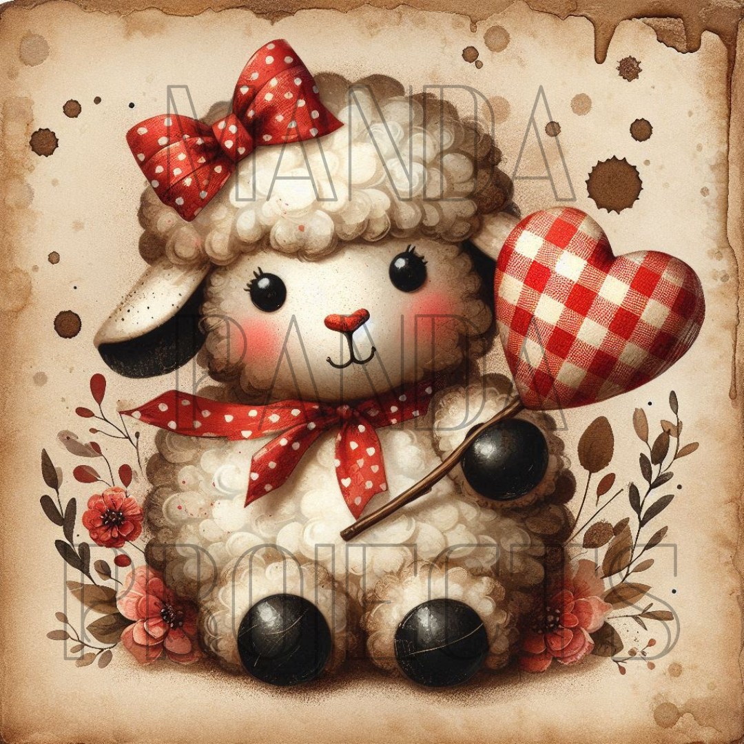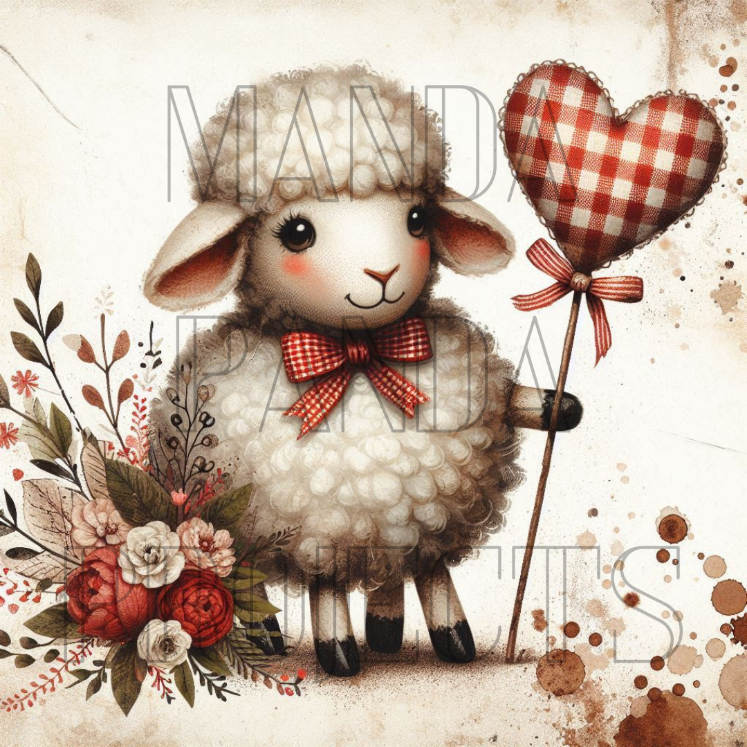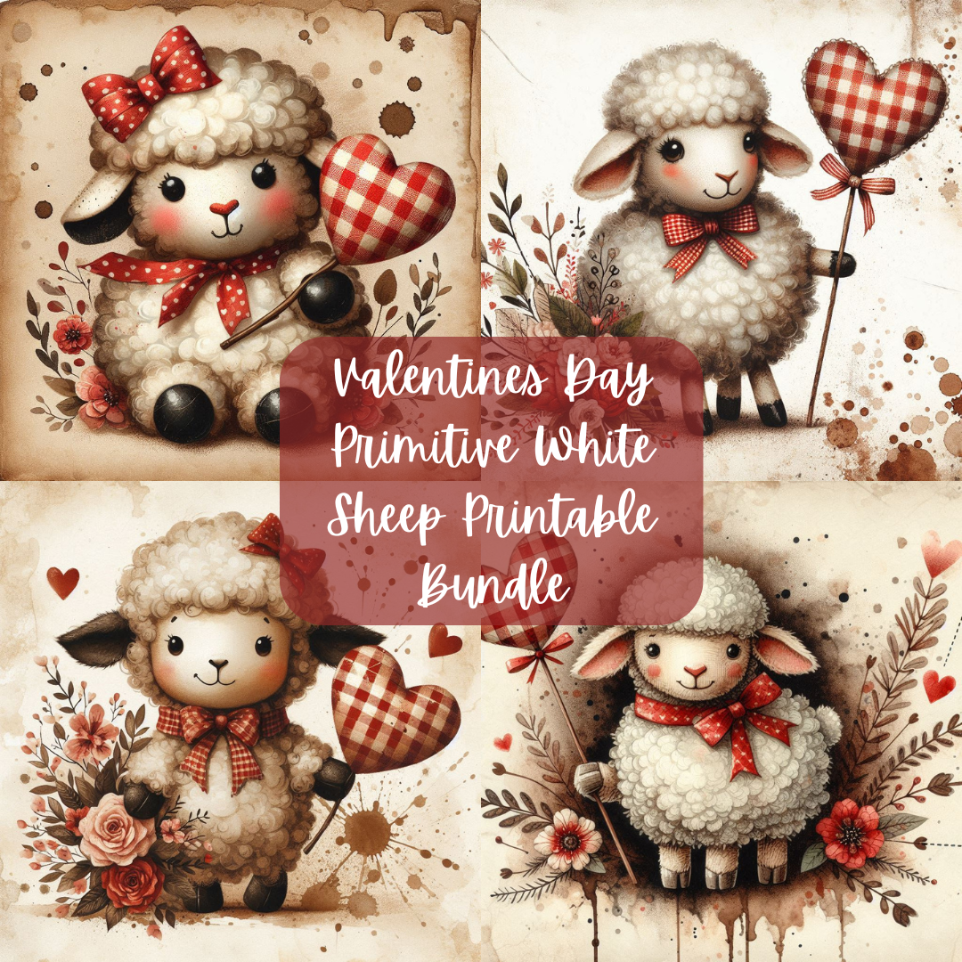 Printable bundle of 4 different styles of digital prints for crafting and decorating. You get all 4 prints that you see in the listing photos. There are several different cute Primitive White Sheep, holding red check hearts. This paper is perfect for Valentines Day crafts and decor. These can also be used as printable art for framing.