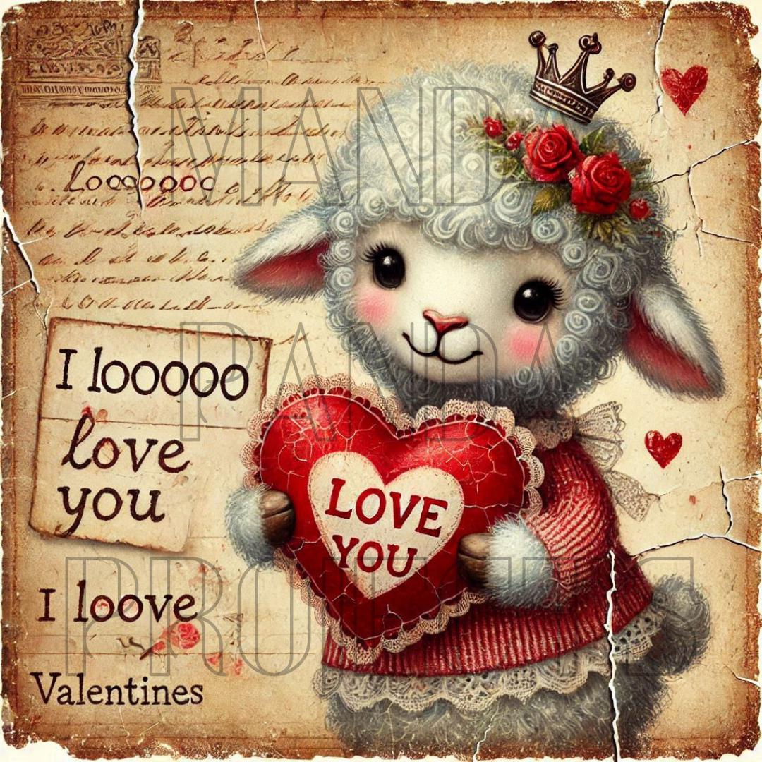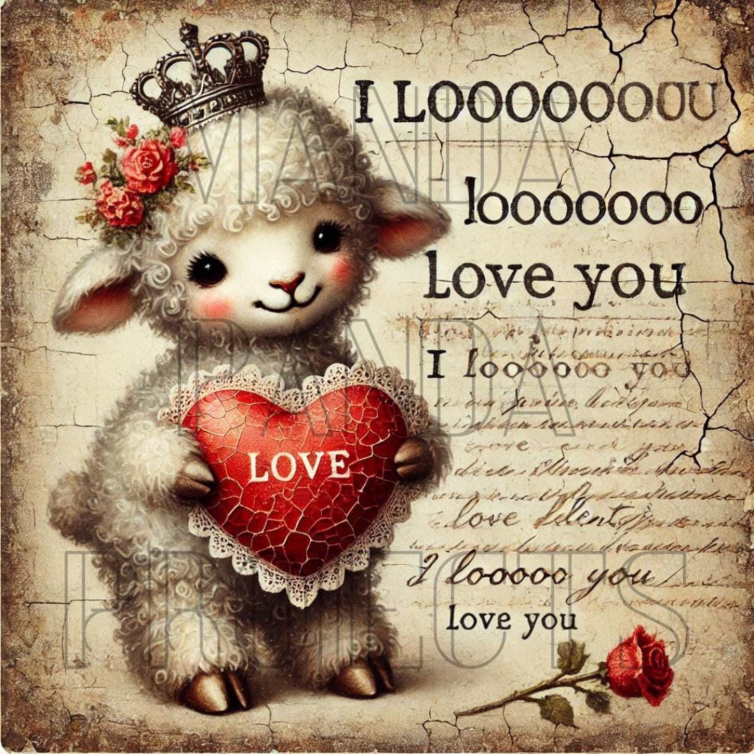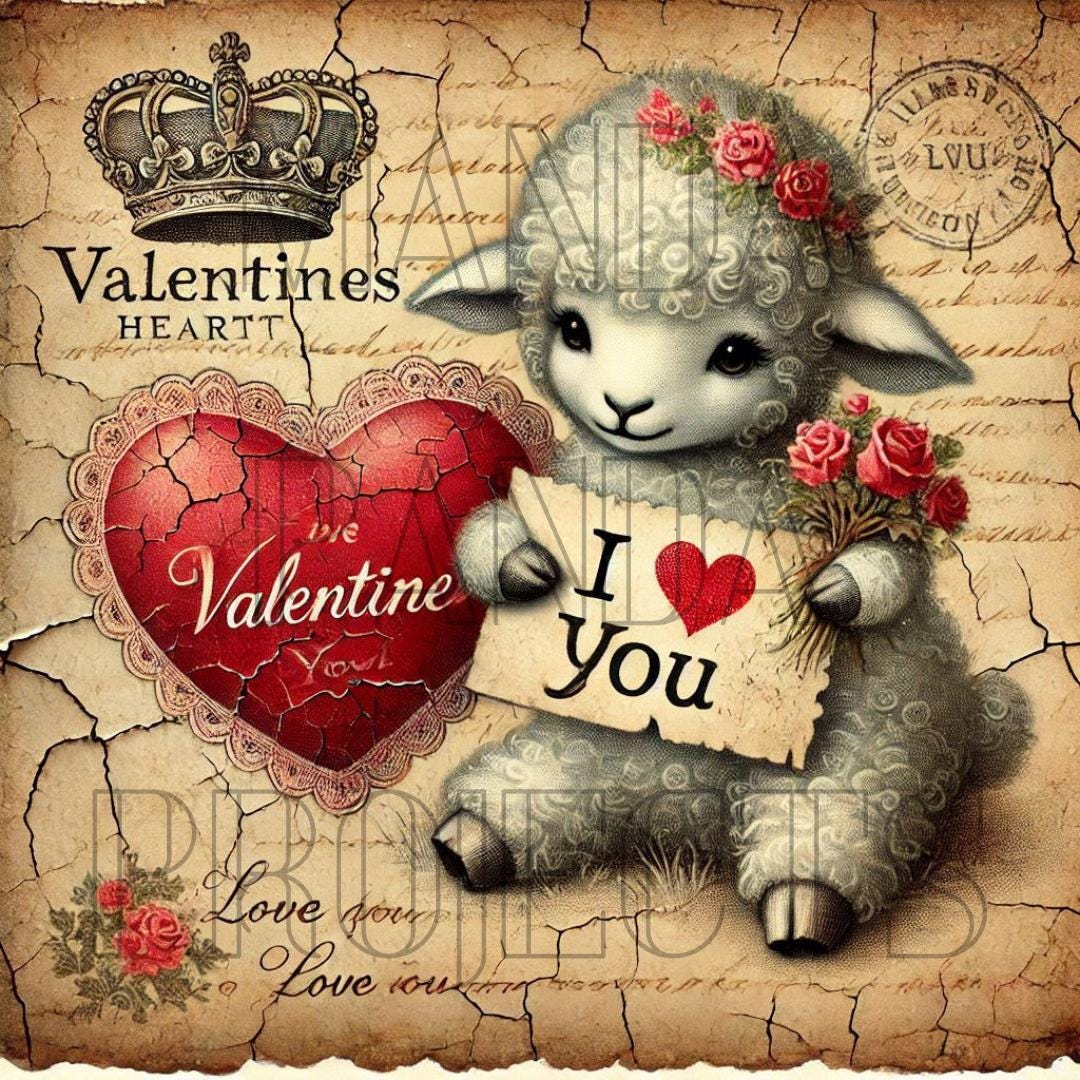 Printable bundle of 5 different styles of digital prints for crafting and decorating. 4 + BONUS PRINT! You get all 5 prints that you see in the listing photos. There are several different cute vintage lambs, holding signs that say "I Love You". This paper is perfect for Valentines Day crafts and decor. These can also be used as printable art for framing.