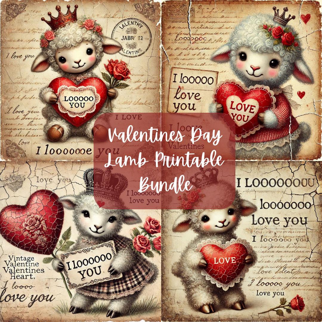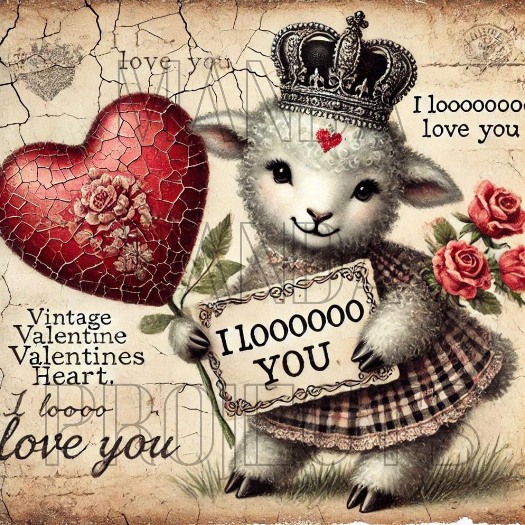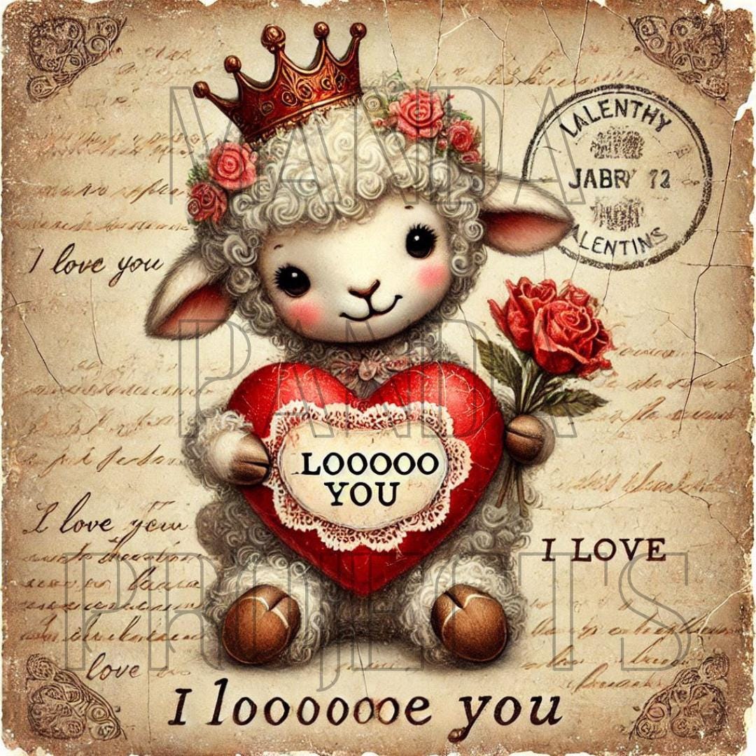 Printable bundle of 5 different styles of digital prints for crafting and decorating. 4 + BONUS PRINT! You get all 5 prints that you see in the listing photos. There are several different cute vintage lambs, holding signs that say "I Love You". This paper is perfect for Valentines Day crafts and decor. These can also be used as printable art for framing.